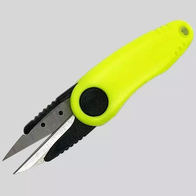 Рибальські ножиці в яскравому жовтому корпусі, створені для точного та швидкого обрізання плетінки, монофільної ліски та флюорокарбону. Гострі сталеві леза забезпечують чистий зріз без розщеплення, що робить їх ідеальними для монтажу оснасток, вузлів та повідців.