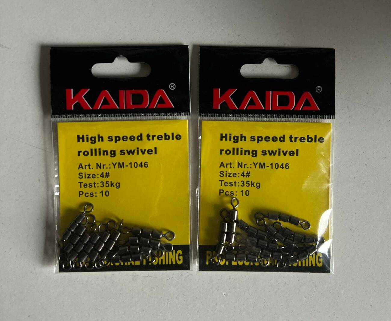 Швидкісний потрійний вертлюг KAIDA YM-1046 призначений для максимального захисту від перекручування волосіні при високих навантаженнях. Забезпечує плавне обертання, міцне з’єднання та надійну роботу снасті. Підходить для донної, фідерної, спінінгової та морської риболовлі.