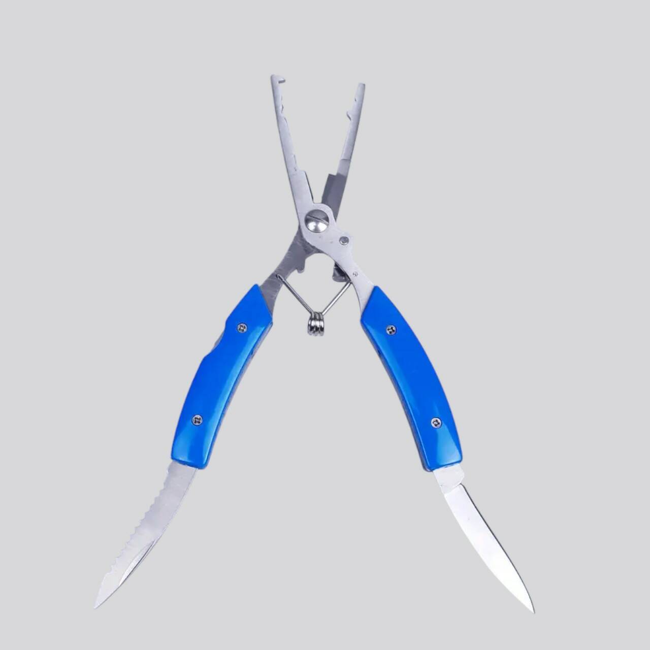 Універсальні риболовні плоскогубці-мультитул призначені для виконання широкого спектра риболовних завдань. Інструмент поєднує плоскогубці, ніж та серрейторне лезо, що робить його незамінним під час спінінгової, фідерної та хижої риболовлі. Оснащений пружинним механізмом для зручного відкривання та ергономічними прогумованими ручками, які забезпечують надійне утримання.